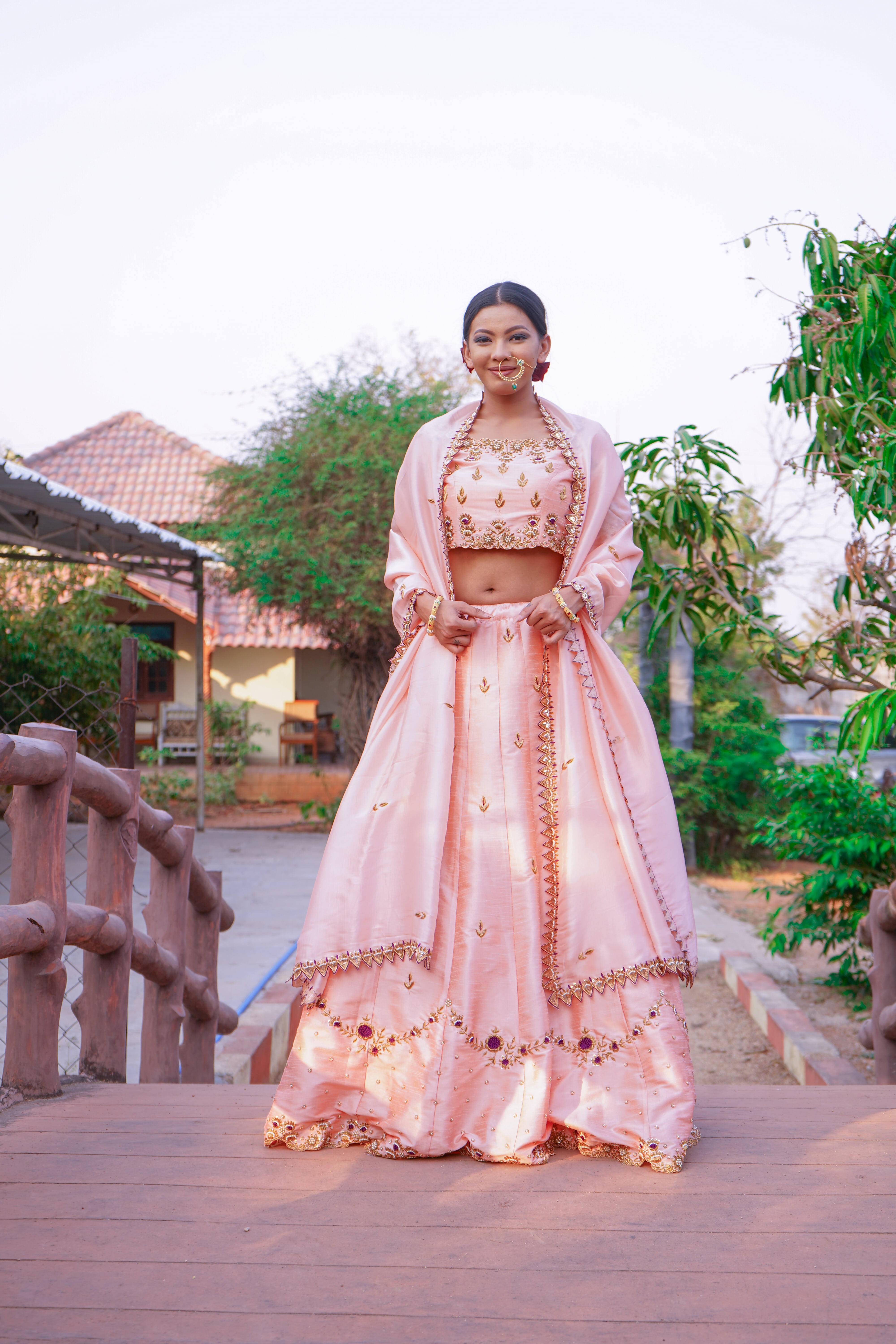 Peach Lehenga with Zardozi Hand Work