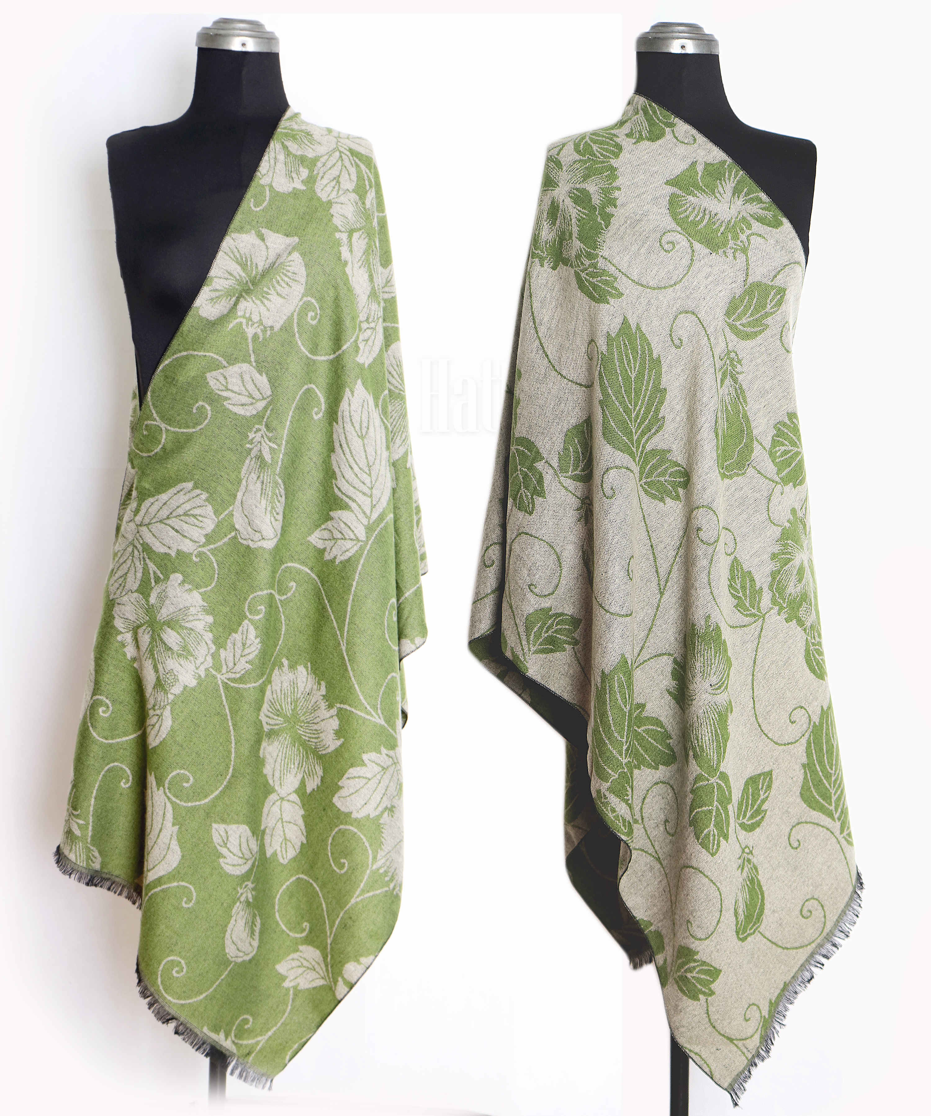 Warm Staller Greenish Base With flowers & Leaf Design