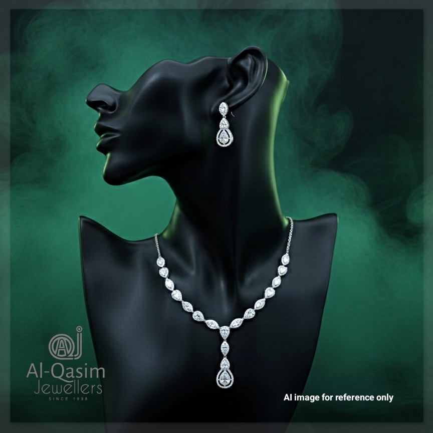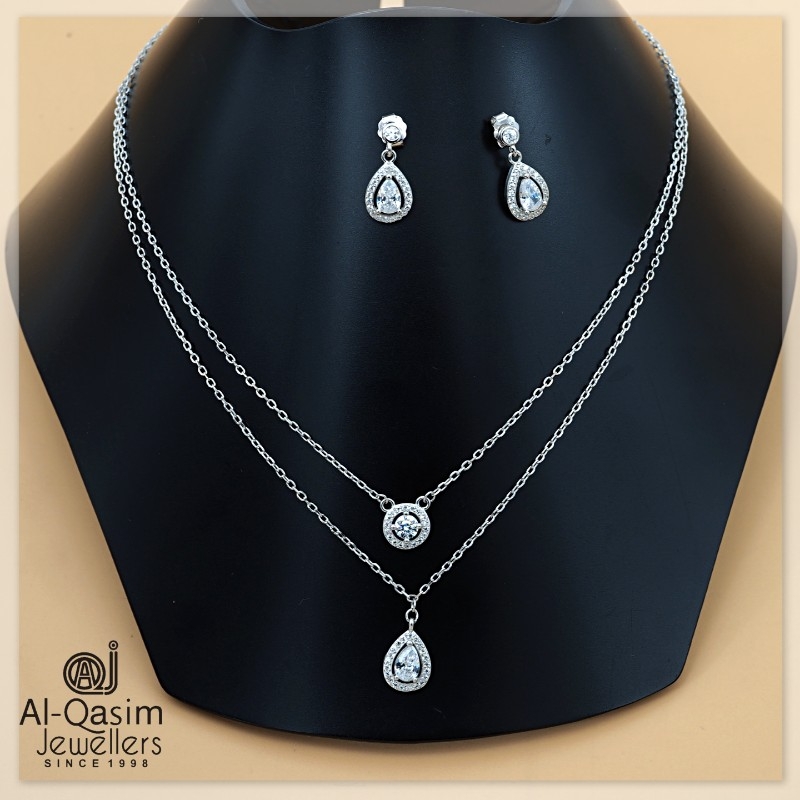 Tear Drop Silver Necklace Set
