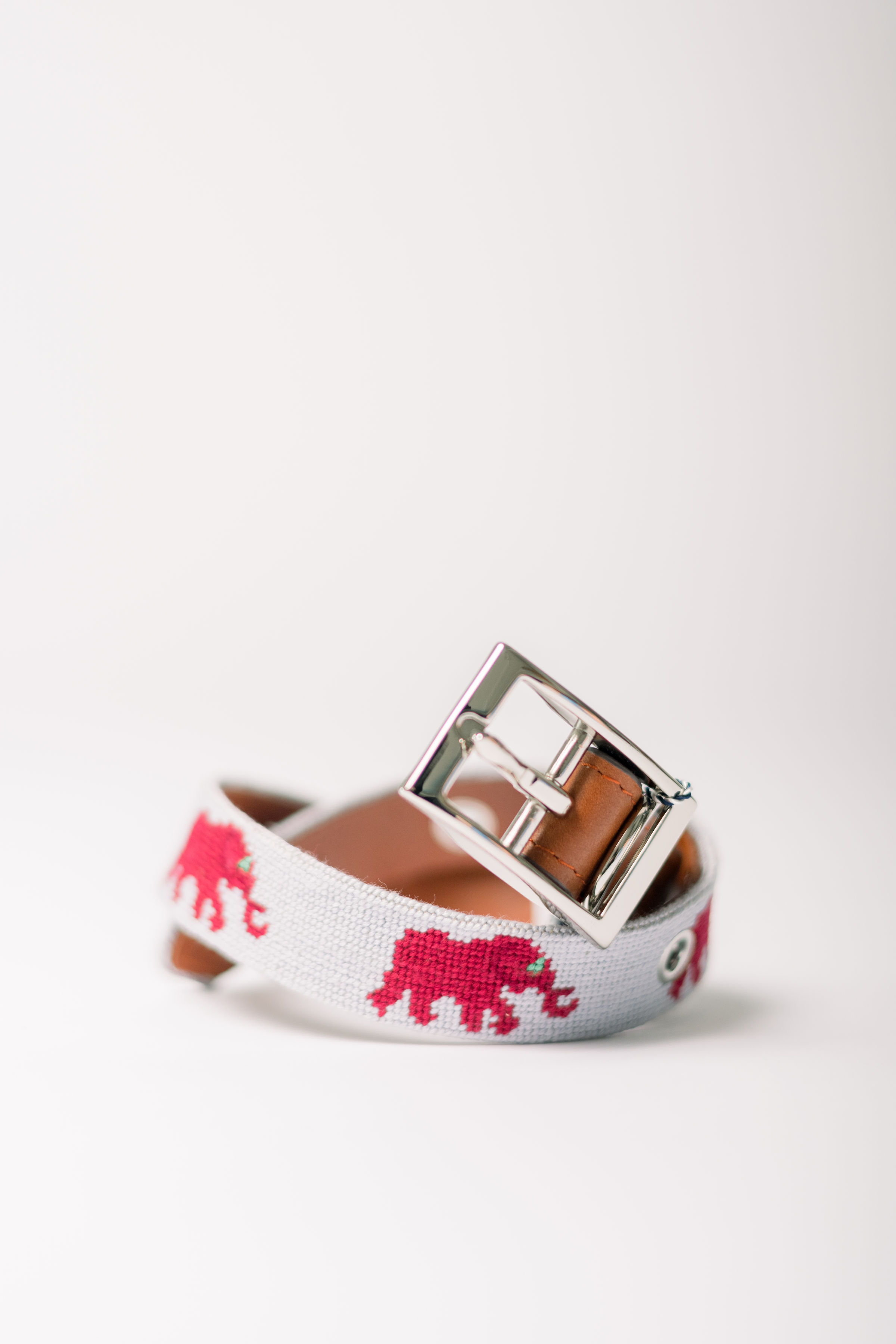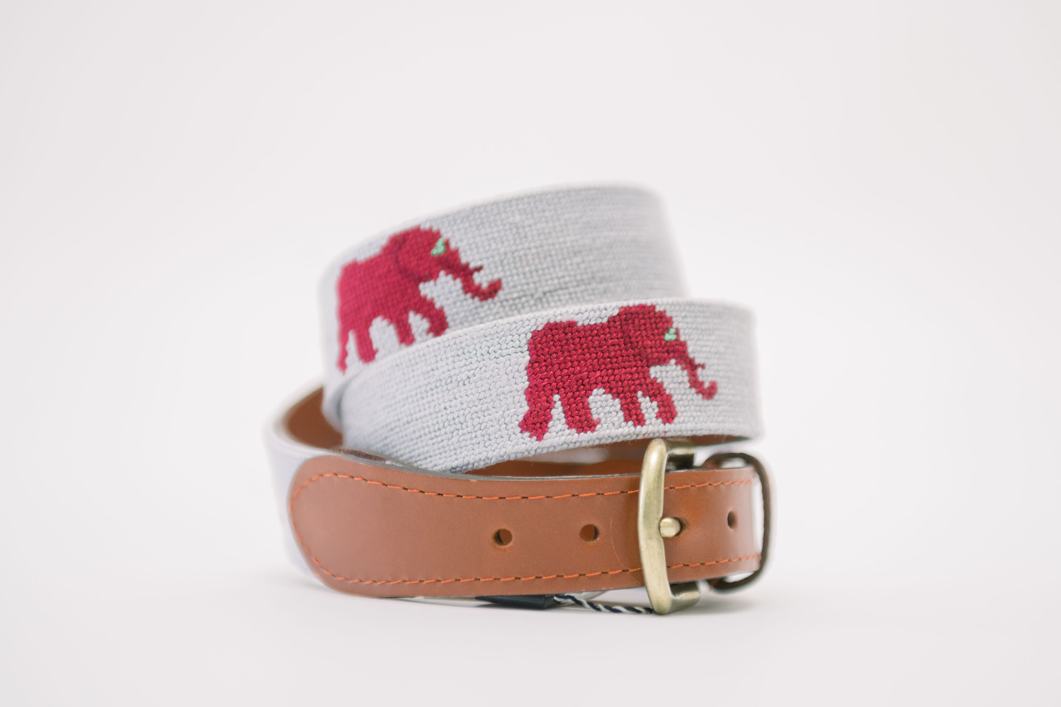 Smathers & Branson Grey Needlepoint Elephant Belt