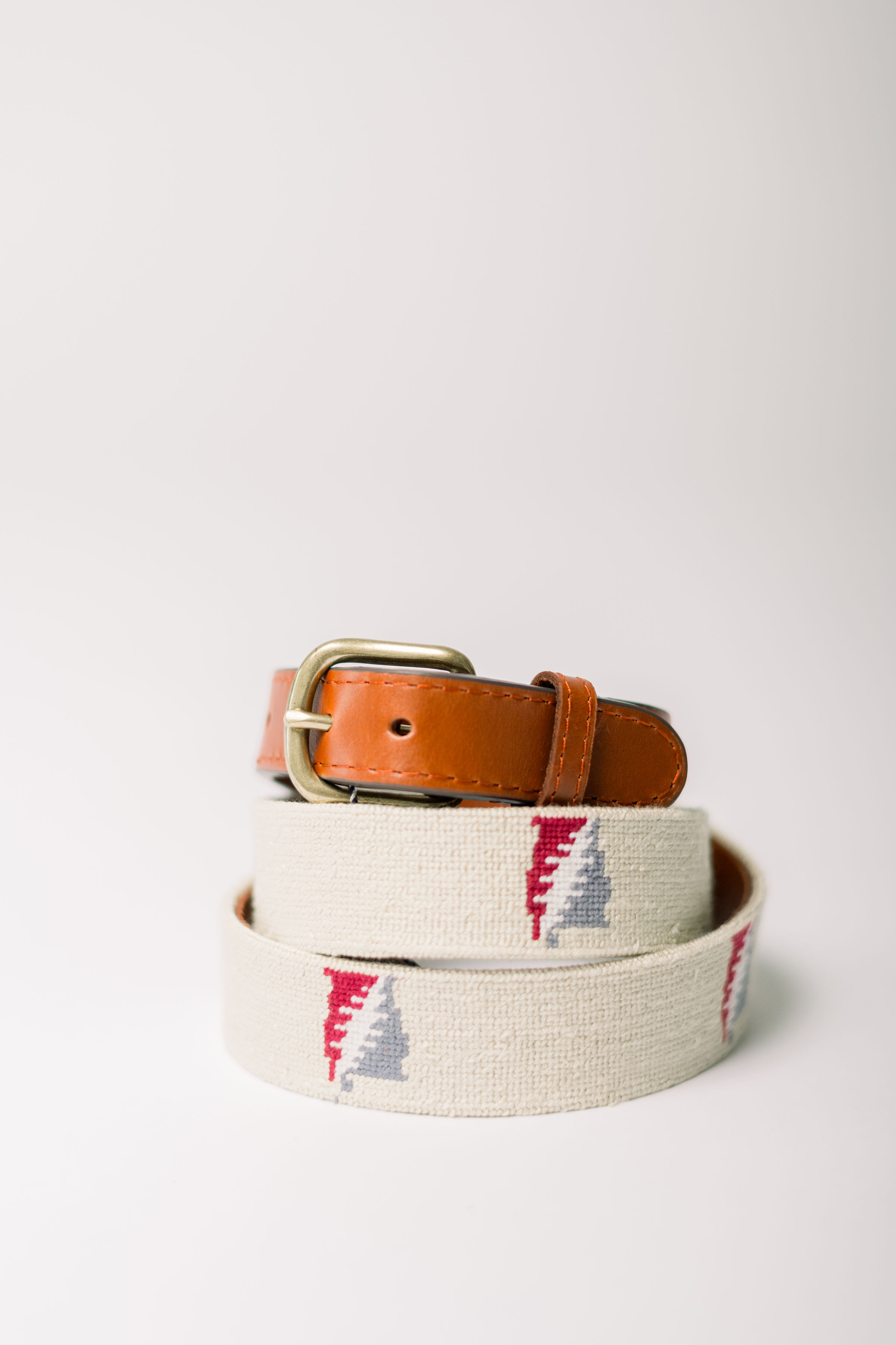 Smathers & Branson Khaki Needlepoint State “Steal Your Face” Belt
