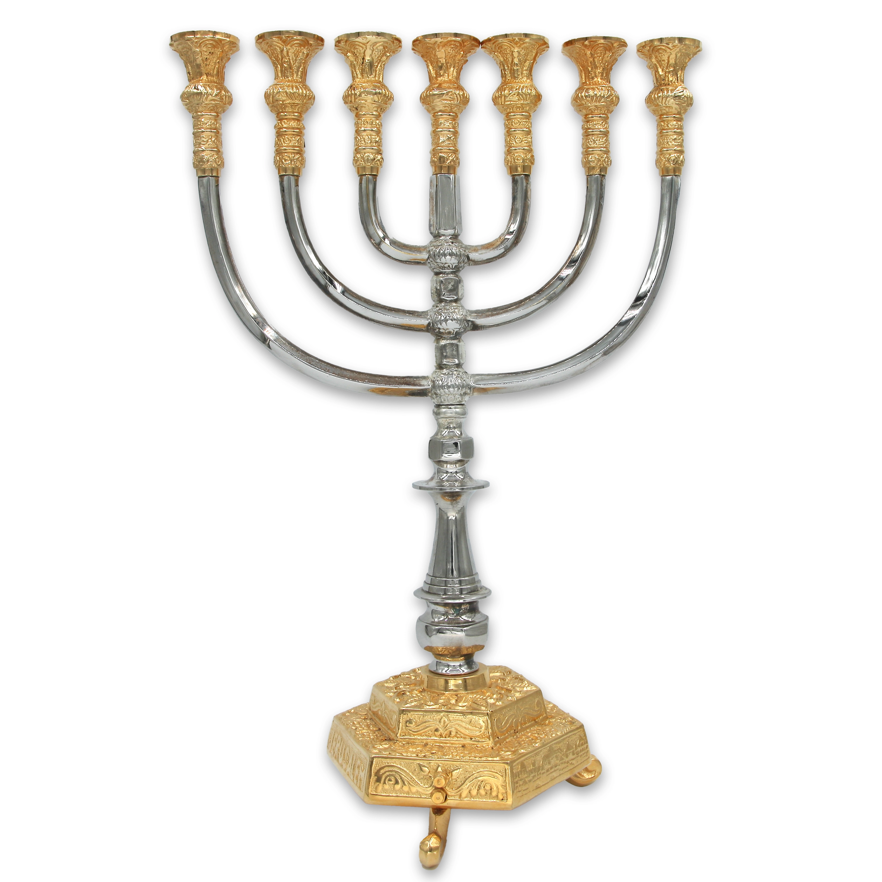 Menorah – Jerusalem, Silver Arms with Gold Base